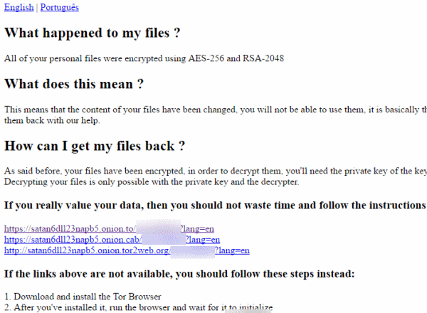 Jeśli na ekranie zaszyfrowanego komputera widzisz taki komunikat, infekcję spowodował wirus z rodziny Satan.